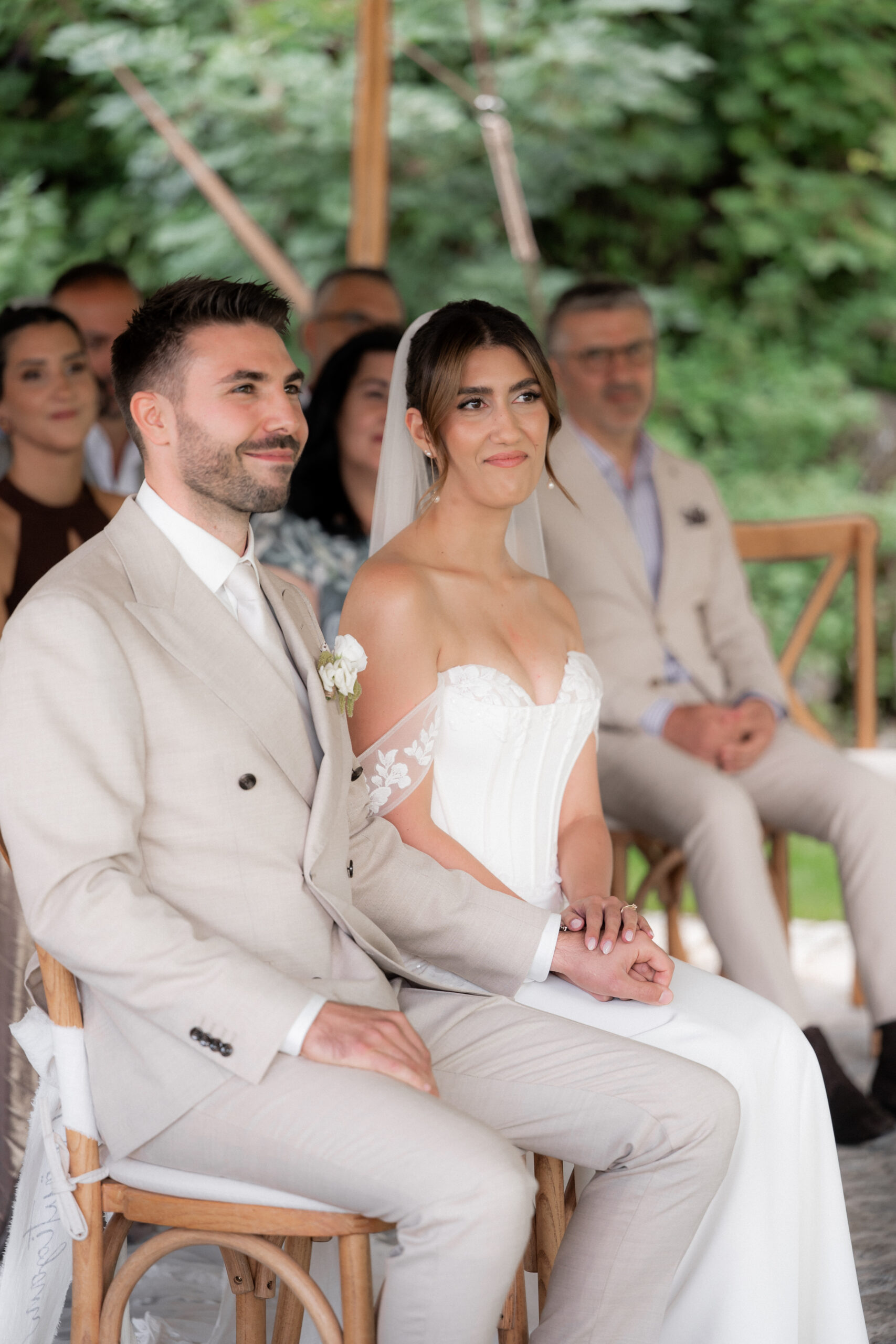 Nina & Paul haben sich für eine freie Trauung entschieden, die genauso entspannt und herzlich war wie sie selbst. Die Trauung wurde von einer Live-Band begleitet. Die Gäste saßen mit dem Blick aufs Meer – die perfekte Kulisse für ihren Tag. Ein echtes Highlight: die Sprachnachricht ihres kleinen Sohnes kurz vor dem Einzug. Mehr Liebe in einem Moment ging kaum.